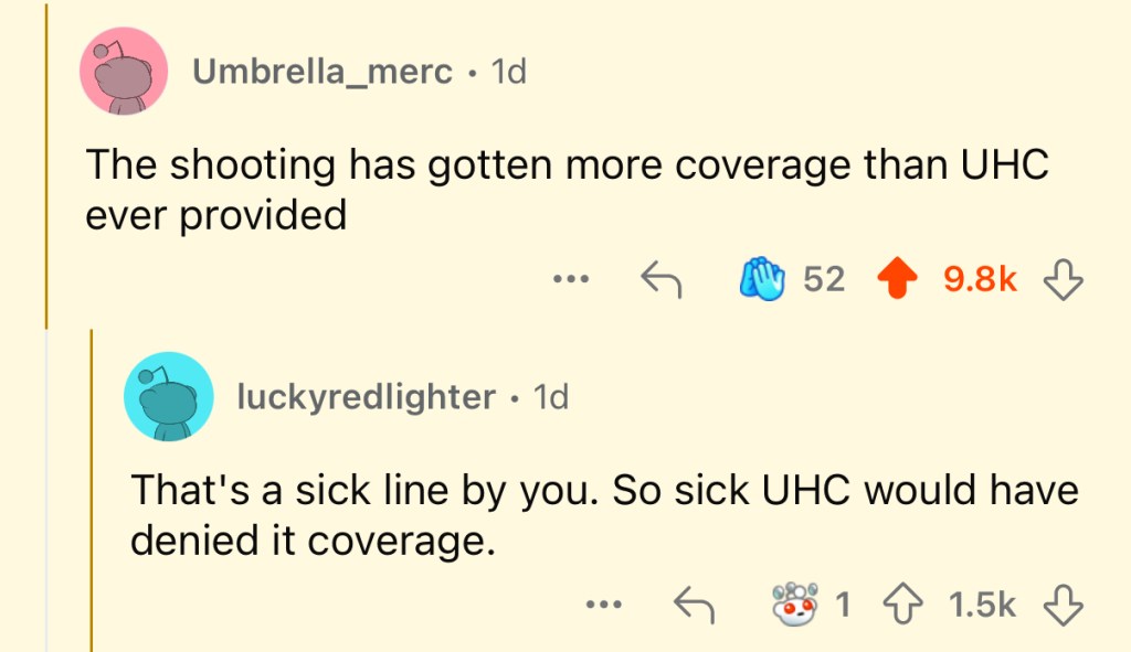 Yep, the UnitedHealthcare CEO was gunned down on the streets of New York Cityโliterallyโthis week. The manhunt, the surveillance footage, the breathless reporters, the Reddit brigade figuring out which make, model, and even the edition of the backpack he was wearing, plus all the jokes and comments… it’s been a whirlwind. Even podcasters like Kara Swisher and Scott Galloway went off on anyone that would make light of the murder because… reasons! (Easy to wag your finger at the plebes when you’re a self-insured millionaire.)