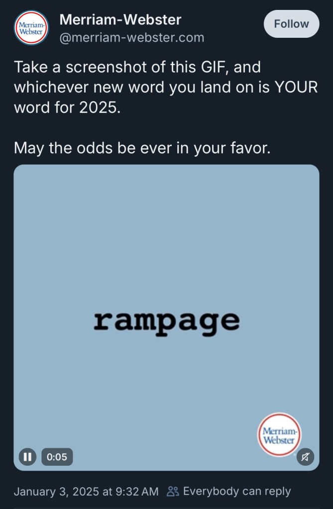 I played this little new year social media game with Merriam-Webster and, well, the results were illuminating. Consider yourself warned.
