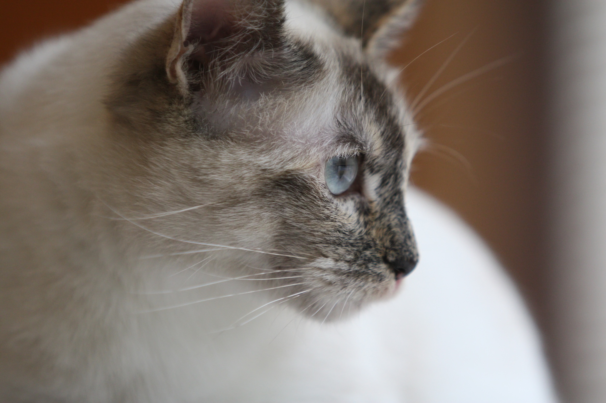Shortly after we brought Ophelia home in 2009 I was able to get some shots of her on film with a big Canon lens and nice camera. Her coloration changed a bit over the years, but she never lost those soft blue eyes.
