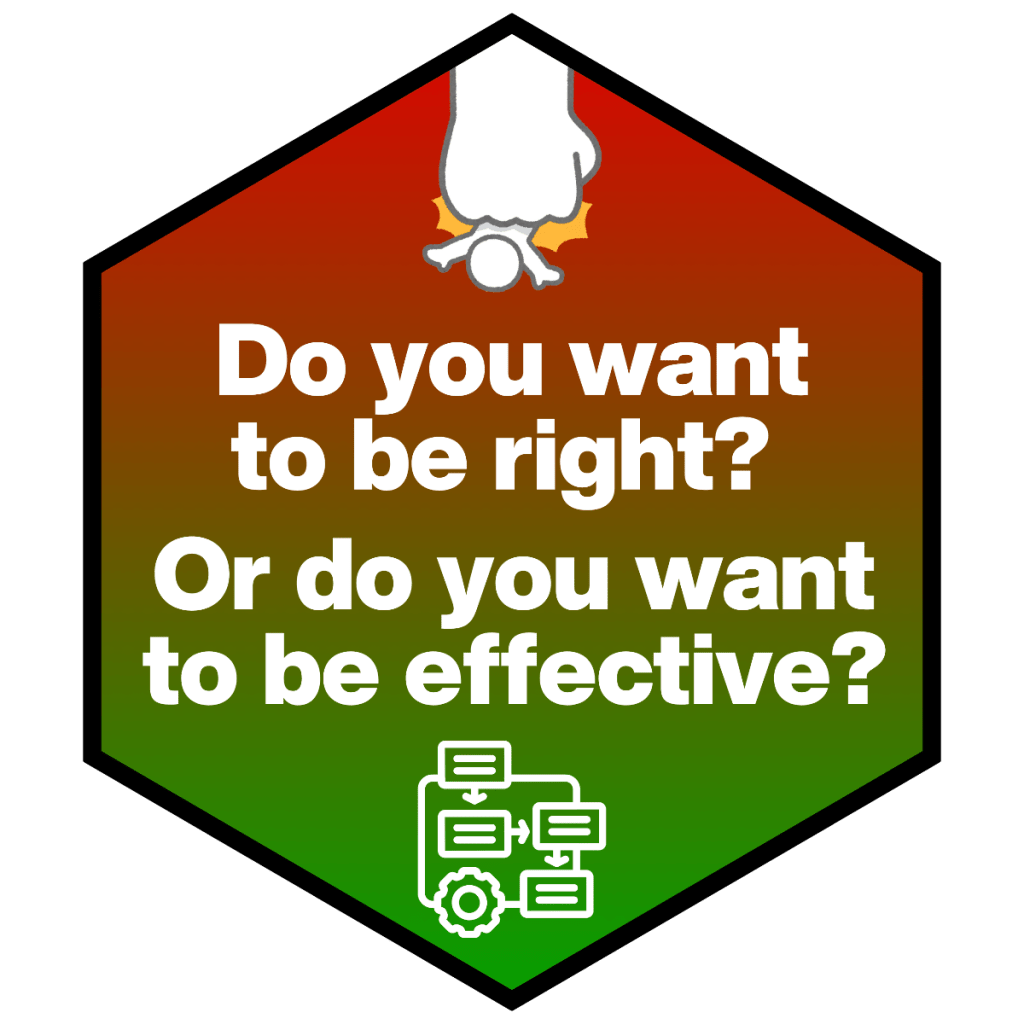 However, we were all hired to get things done. We were hired to be effective. Efficient would be nice, too, but really effective is the goal. Effective at making changes.Effective at making a difference. Even consultants that are paid to “be right” for customers, offering good advice, still have to be effective at communicating their ideas to get buy-in from their customers.