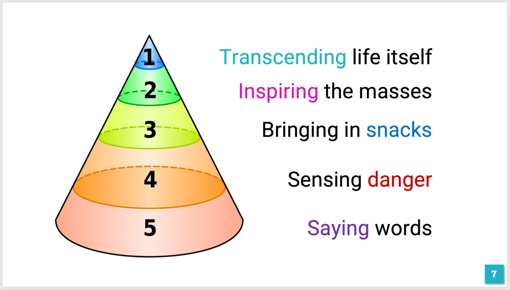 • This week I hosted our 3rd annual PowerPoint Karaoke event, and it was both fun and funny, as usual. In this case we had 6 presenters and 4 winning categories, with little prizes for the winners (little NSFW sound-makers from Ozzy Man Reviews). 3 volunteer judges picked the winners. My role was to build the slide deck and run the slides—10 slides for each presenter, on a topic they’ve never seen. Highly recommended event for all kinds of teams out there!